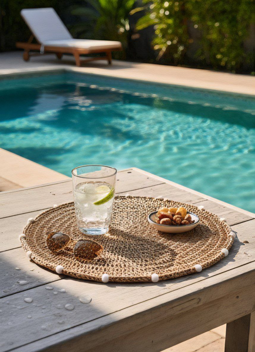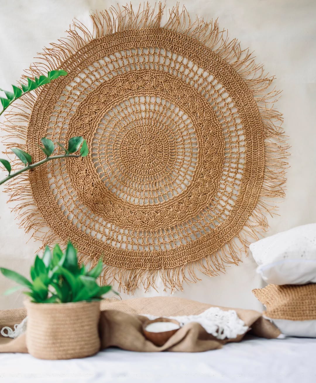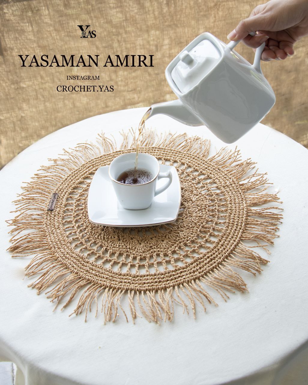 رومیزی مدل طرحدار ریشه دار جنس رافیا