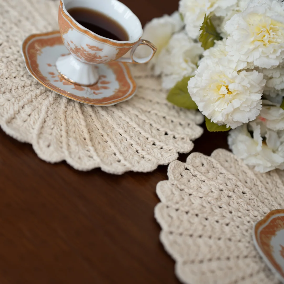 همون زیربشقابی یا رومیزی جذاابمون جنسش کتانه قطرش ۳۲ قابل در اندازه و رنگ دلخواه برای داشتنش کافیه میام بدی