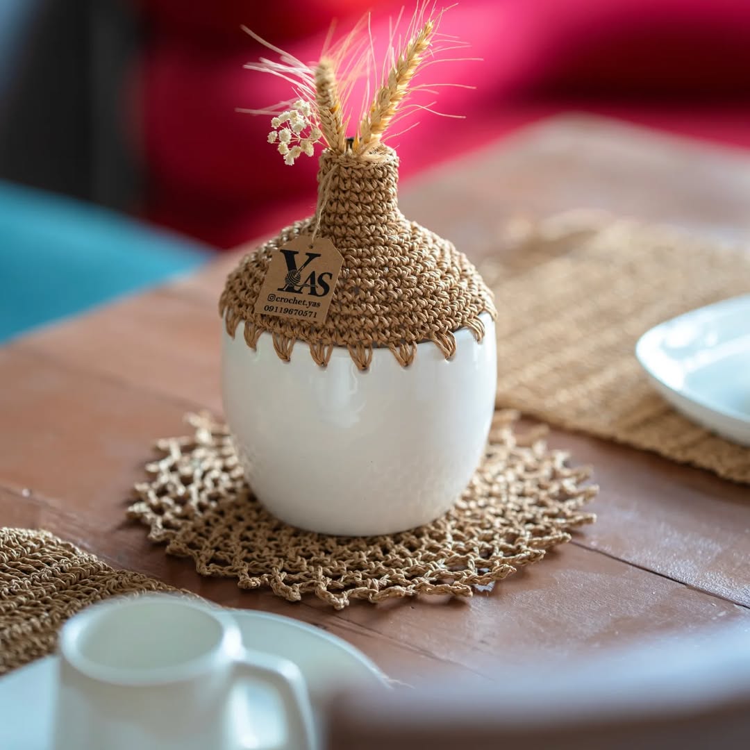 زیرگلدونی یا رومیزی عسلی رافیا قطر: ۲۵ سانت